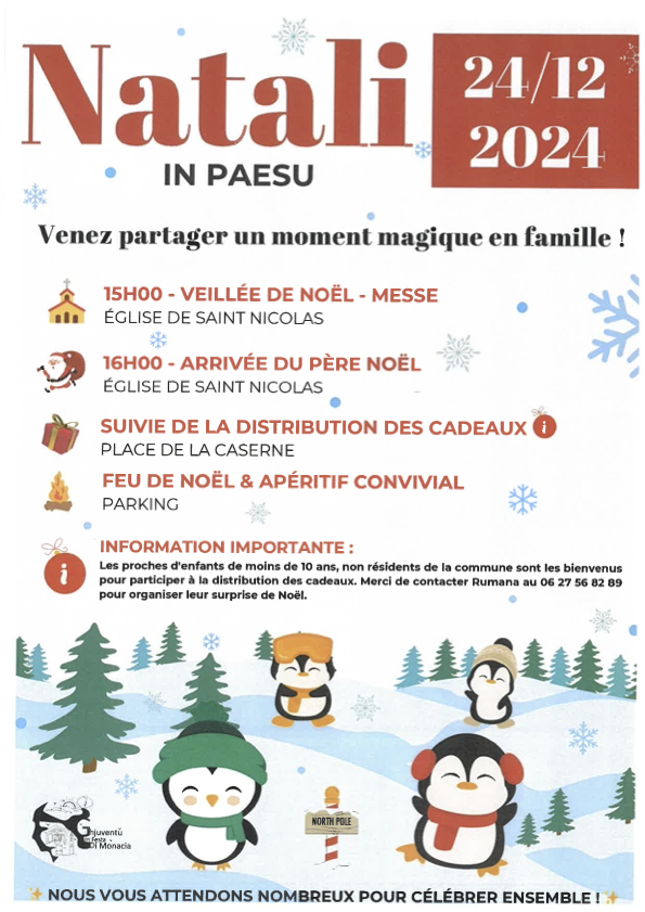 La magie de Noël s’invite à Monacia d’Aullène mardi 24 décembre ! Une belle occasion de se rassembler en famille et entre amis pour célébrer la joie des fêtes !