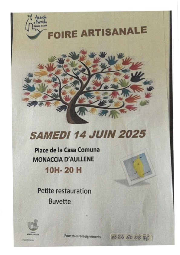 Rendez-vous samedi 14 juin 2025, Place de Casa Comuna à Monacia pour une Foire artisanale au cœur de la commune.