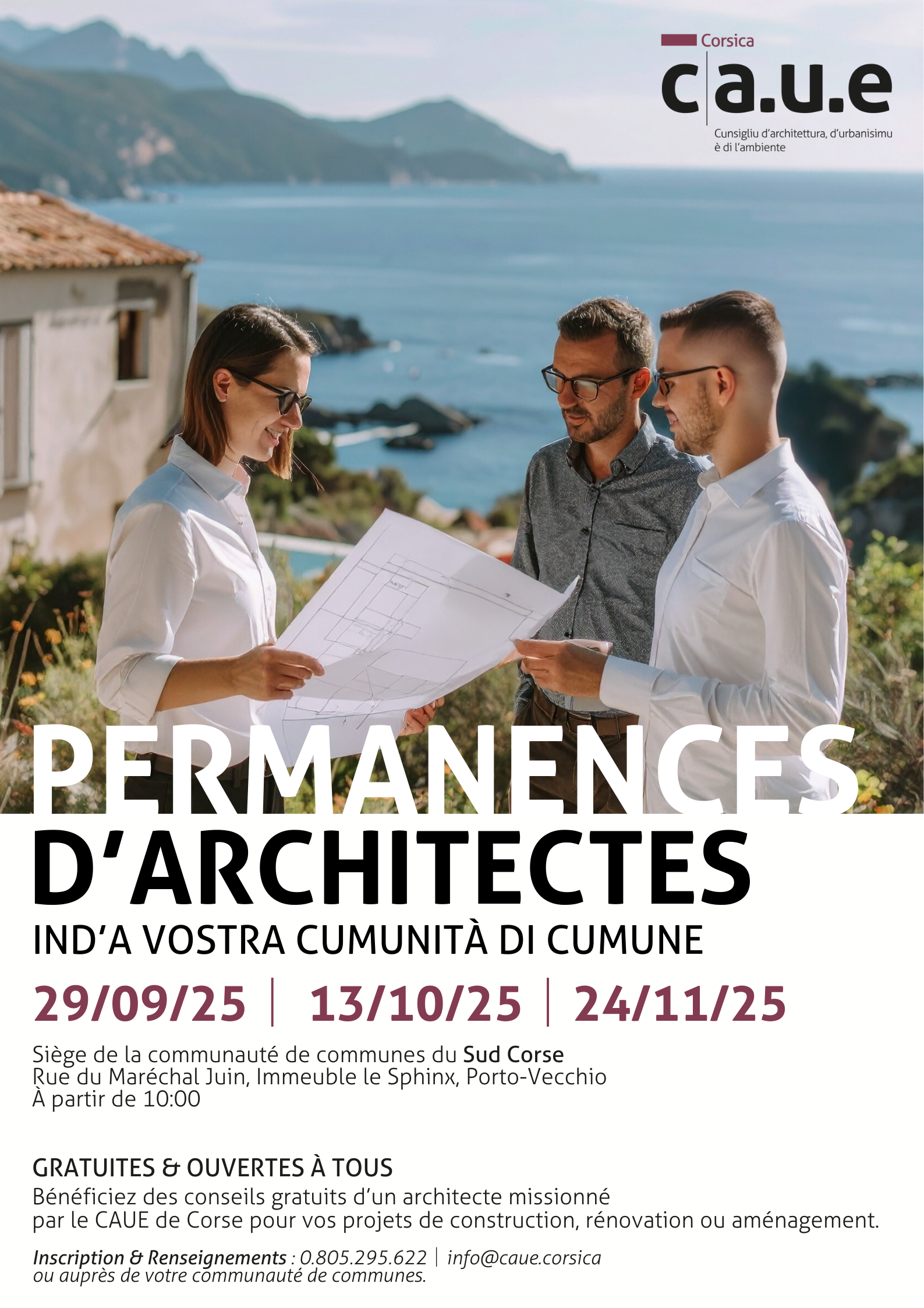 Un architecte missionné par le CAUE de Corse sera présent pour vous conseiller et répondre à vos questions.
